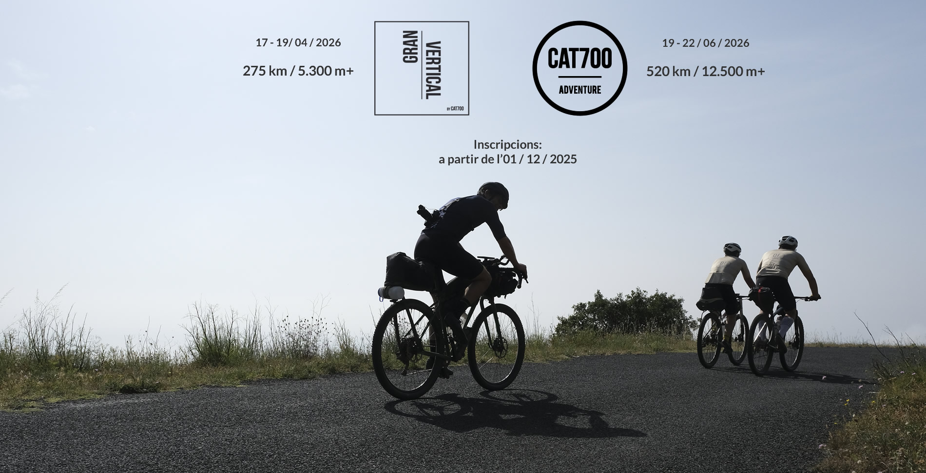 "Una aventura, mil territoris". Aquest és el nostre lema. A la CAT700 i la Gran Vertical, et garantim que viuràs una experiència esportiva intensa, no competitiva; un viatge que et portarà, a través d'uns recorreguts meticulosament traçats, a descobrir territoris ocults. El nostre bagatge com a amants del viatge en bicicleta i dels esports d'aire lliure, així com a organitzadors d'esdeveniments esportius i autors de nombrosos itineraris és el nostre millor aval.